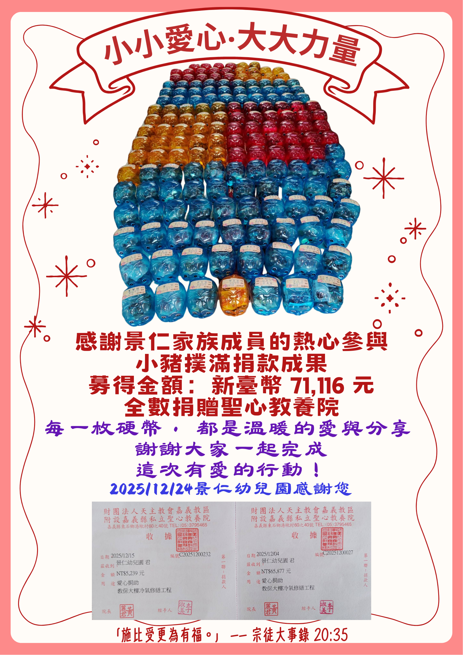 小小愛心.大大力量-小豬撲滿捐款成果公告