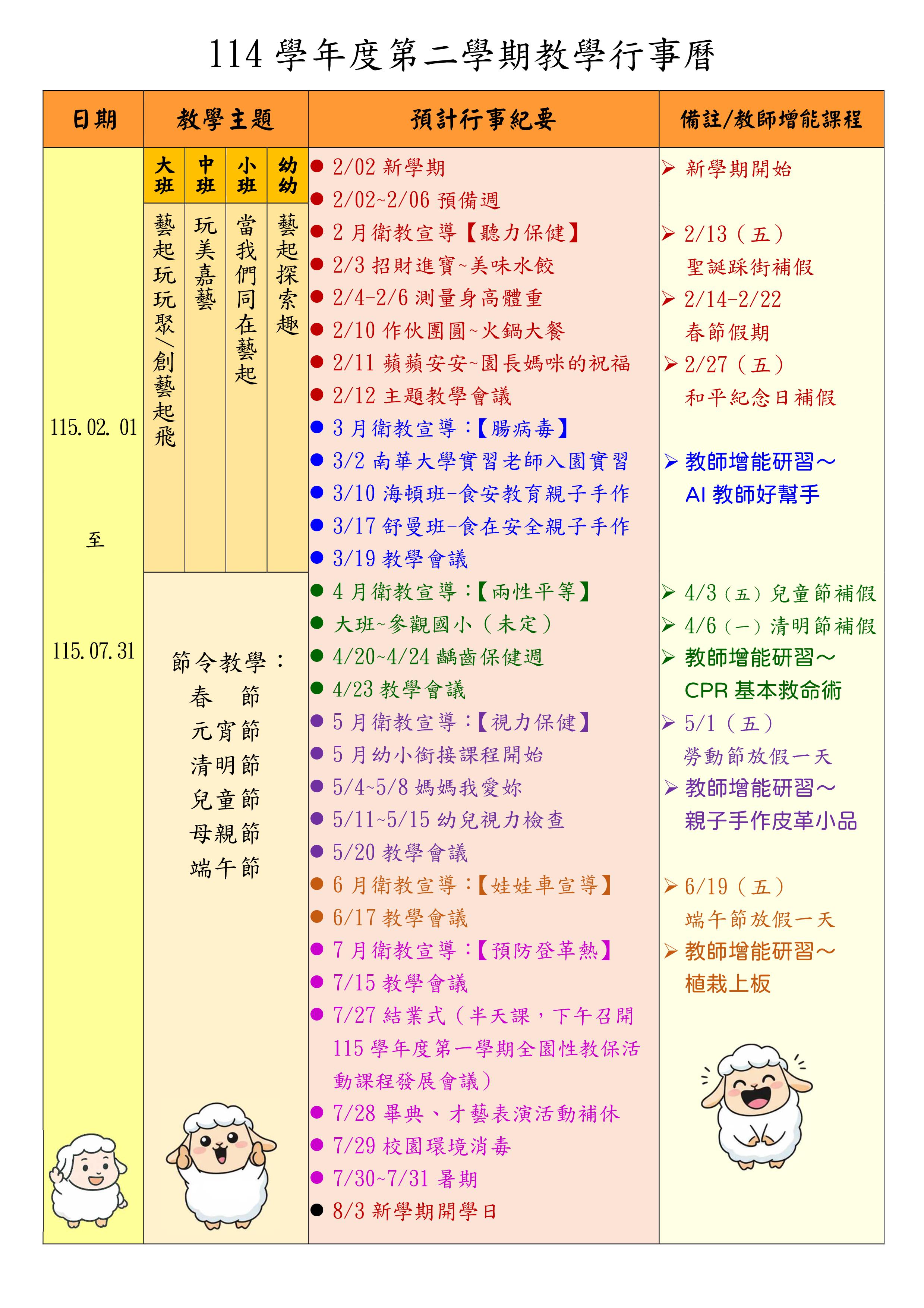 • 教學行事曆